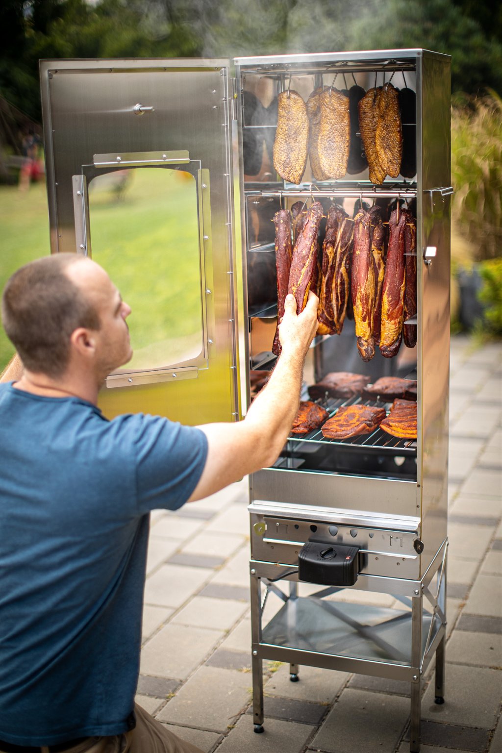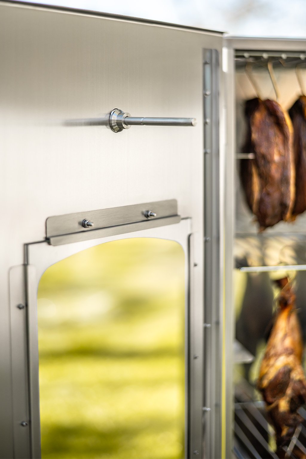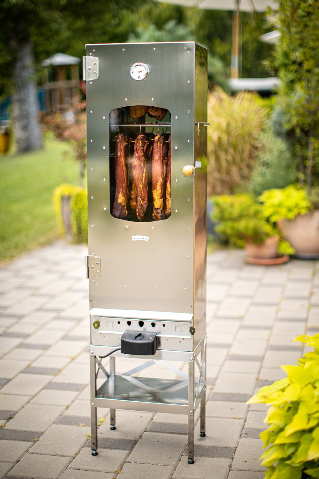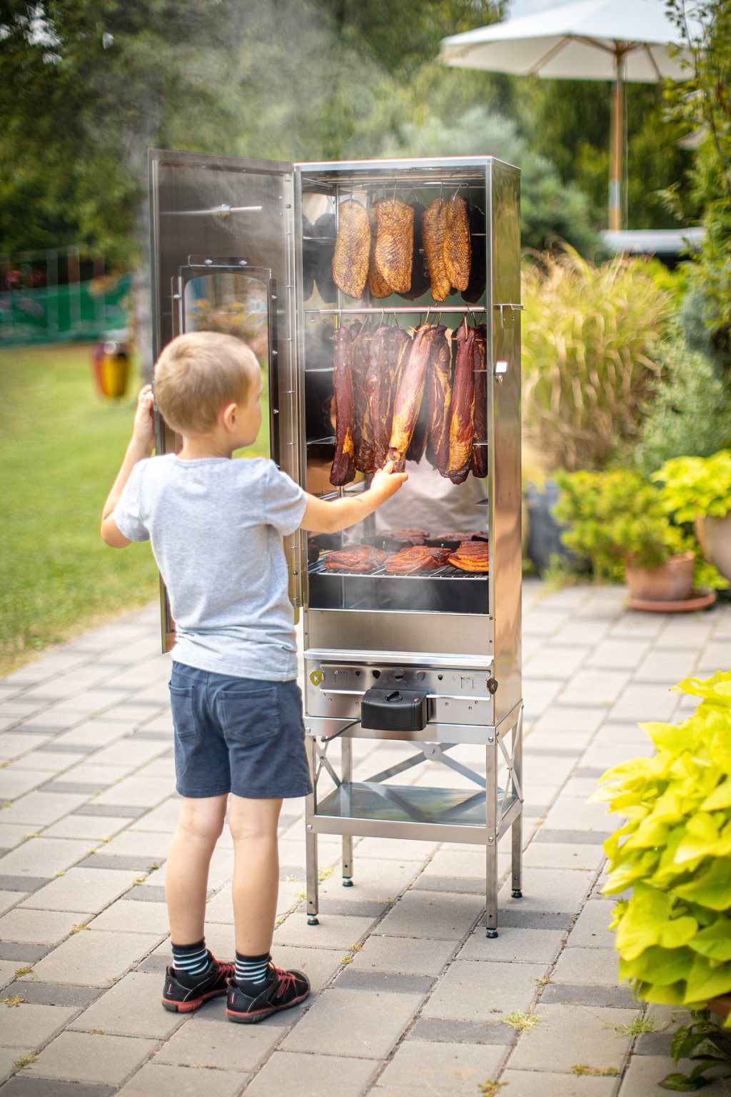 Kaiserova 100' je jednoplášťová udírna. proto jí využijete od jara do podzimu, dokud teplota venku neklesne pod 5 °C. Je ideální na zahradu nebo na terasu a ric pic jí převezete třeba na chatu či chalupu.