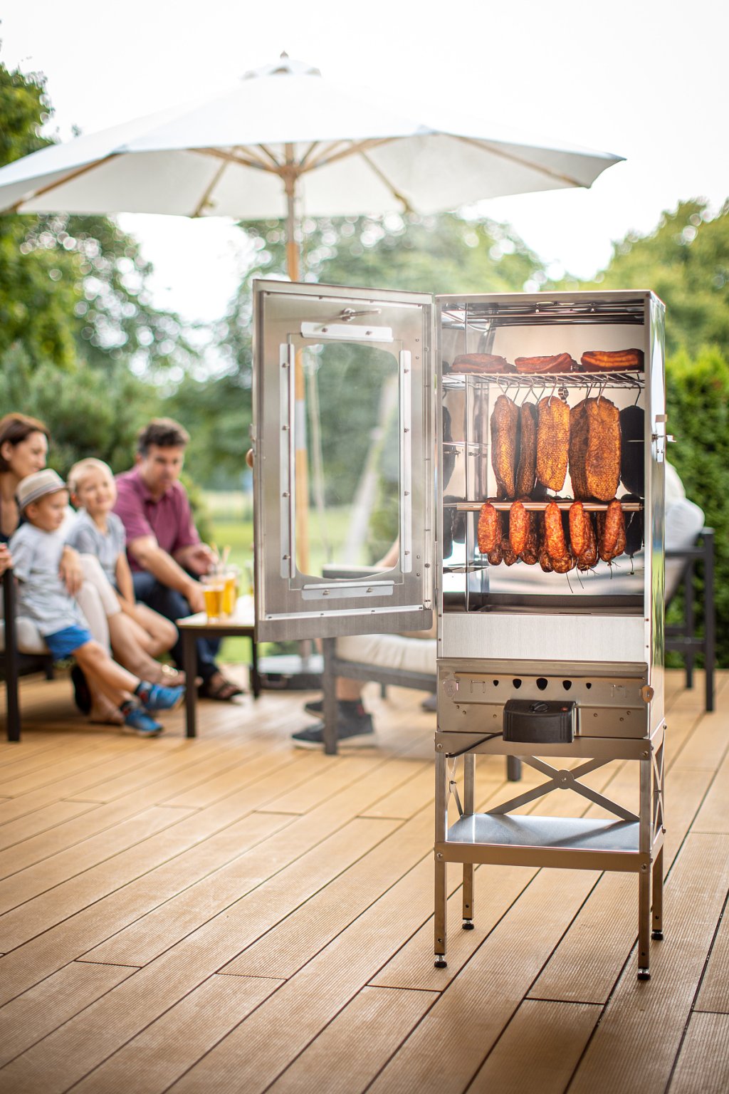 Kaiserova 50' je jednoplášťová nerezová udírna. proto jí využijete od jara do podzimu, dokud teplota venku neklesne pod 5 °C. Je ideální na zahradu, na terasu a nebo jí ric pic převezete třeba na chalupu.