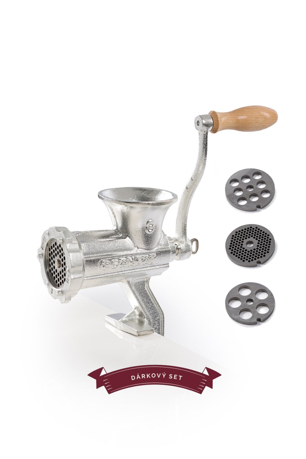 Tradiční český mlýnek PORKERT s kořeny sahajícími až do roku 1895 je poctivej litinovej nástroj, kterej se díky spolehlivosti a kvalitnímu zpracování drží v domácnostech i profesionálních kuchyních už více než sto let. Tělo mlýnku je vyrobené z jakostní šedé litiny a chráněné silnou vrstvou potravinářského cínu, takže vydrží každodenní práci i náročnější přípravu masných výrobků. Součástí balení je také gumová podložka, která při mletí drží mlýnek pevně na místě.
