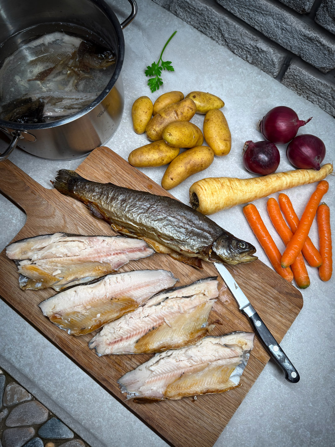 Čtyři poctivě vyuzení pstruzi jsou základ, na kterým stojí tahle vánoční paráda - zkuste je vyudit podle Gerhardova receptu. Doplní je klasická zelenina, trochu smetany, voňavý koření a máte polívku, po který si ostatní možná dvakrát přidaj a budou dělat, že to je protože je velká zima.