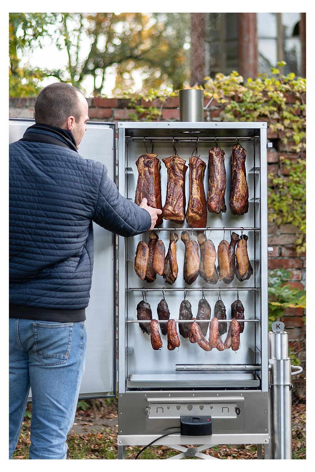 Proviant zavěsíte za haček na nerezové tyčky a nebo pohodlně rozložíte na Rošty. vše najdete v základním balení u udírny. Mrkněte na moje tipy a recepty a nechte se inspirovat!