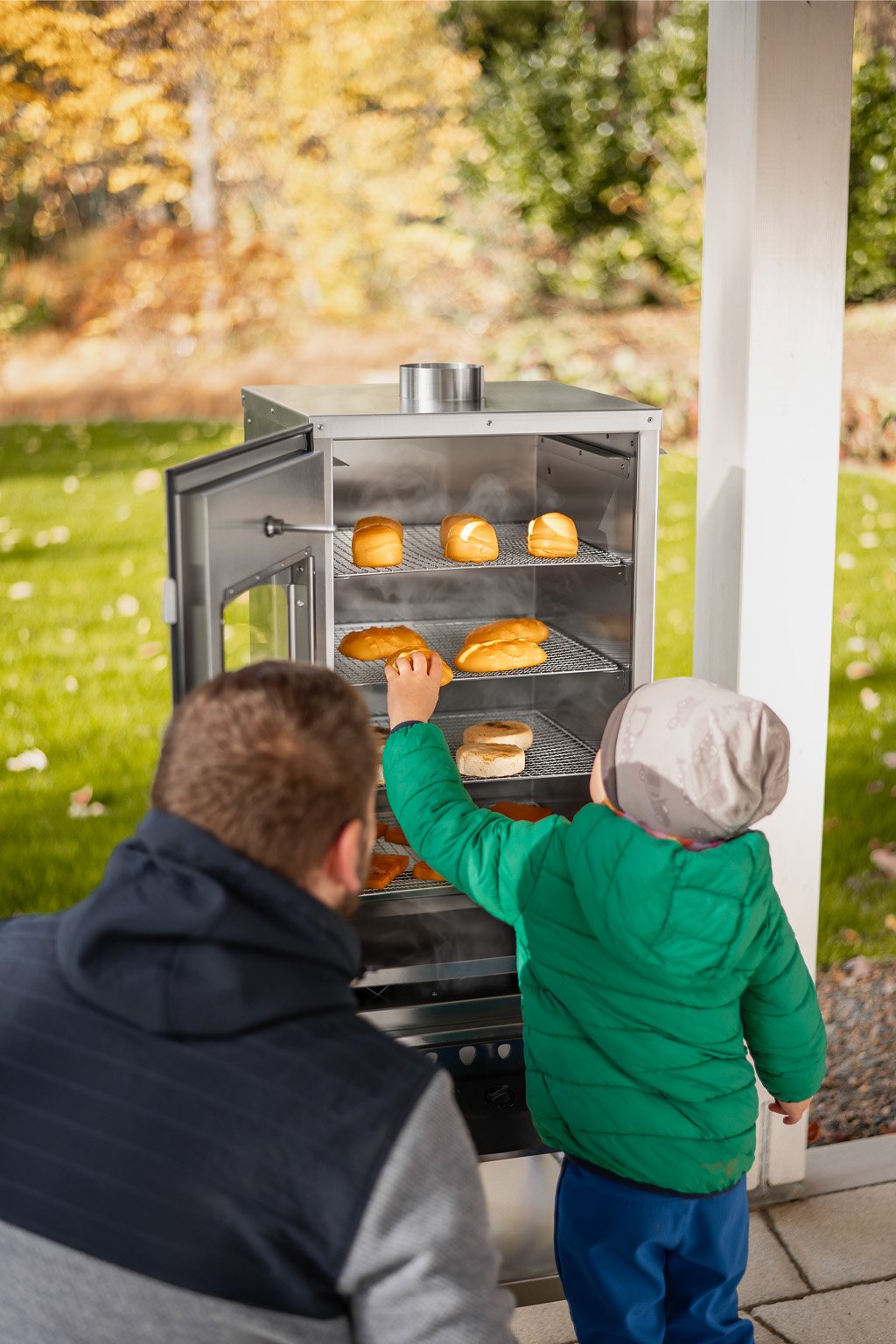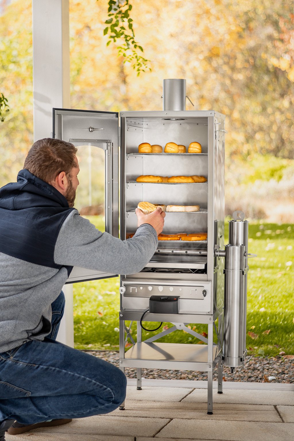 Díky Dvouplášťové izolované konstrukci můžete udírnu používat po celý rok. Je-li teplo nebo zima. Je ideální na zahradu nebo na terasu a jednoduše jí napojíte i na externí kouřovod.