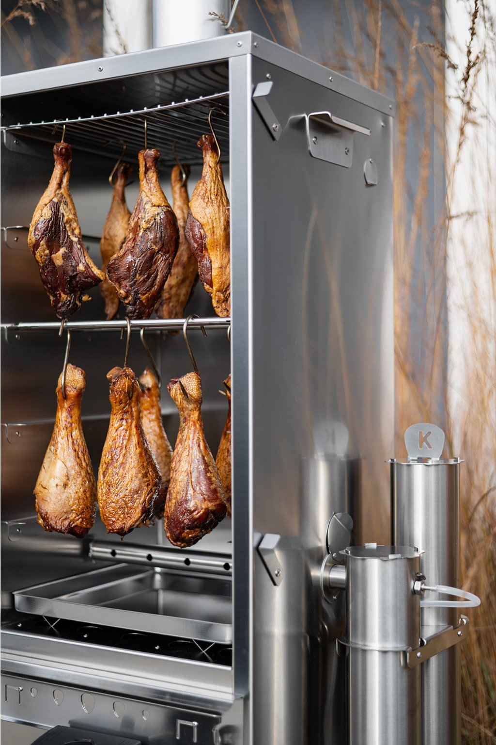 Proviant zavěsíte za háček na nerezové tyčky a nebo pohodlně rozložíte na Rošty. vše najdete v základním balení u udírny. Mrkněte na moje tipy a recepty a nechte se inspirovat!